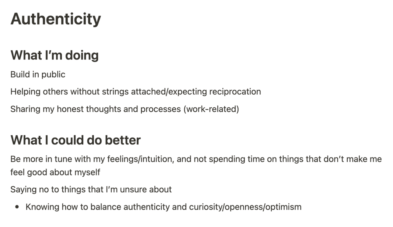 If your value is health, maybe you’d write “exercise more” as what you could do better.