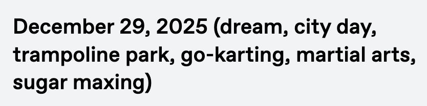 When I do my daily journaling (which can totally be 1 sentence of bullet points, especially on busy days), I put a summary of the highlights in brackets: