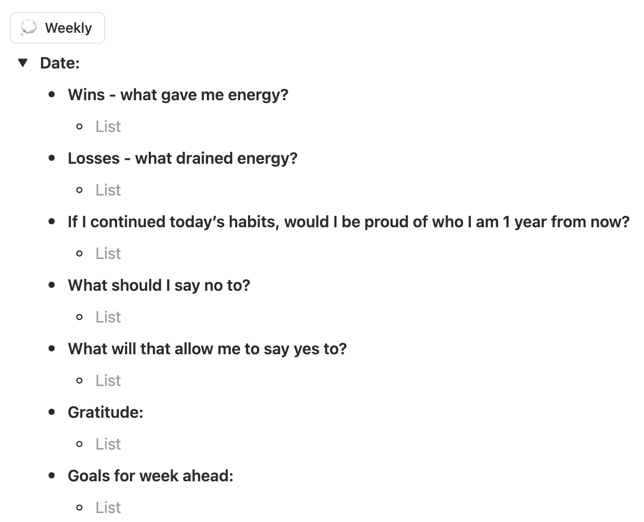 Then, at the end of every week, I have a Notion reminder that lets me know it’s time to do my weekly reflection: