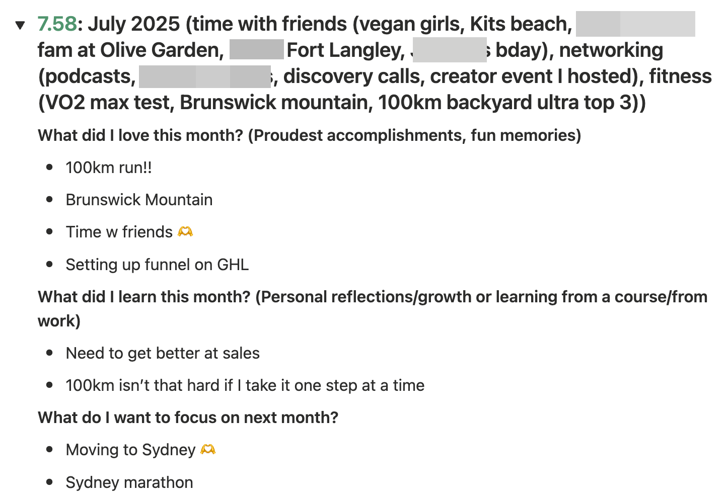 So then the only thing I look at to fill out my quarterly reflections is the monthly highlighted summaries - because that’s what stood out the most to me so I reflect on why they were so important.